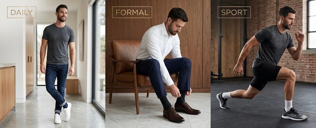 It depends on the style you choose! Our sports socks are specifically built with targeted arch support and mesh zones to give you a secure, breathable fit during physical activity. However, our normal premium cotton socks do not have arch support or mesh, providing a classic, soft, and unrestricted feel for daily wear.